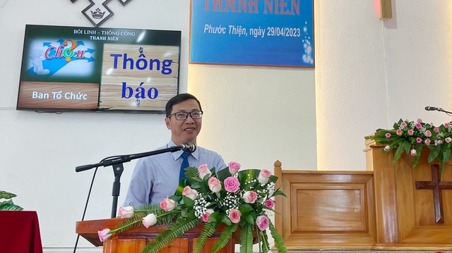 003.Mục sư Võ Đình Quang, đặc trách thanh thiếu niên tỉnh Quảng Ngãi có lời chào mừng, thông báo và triển khai chương trình thông công