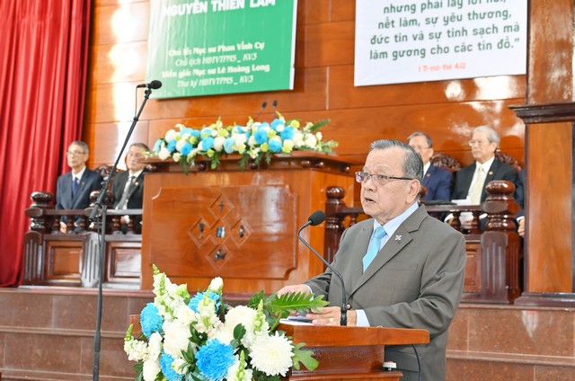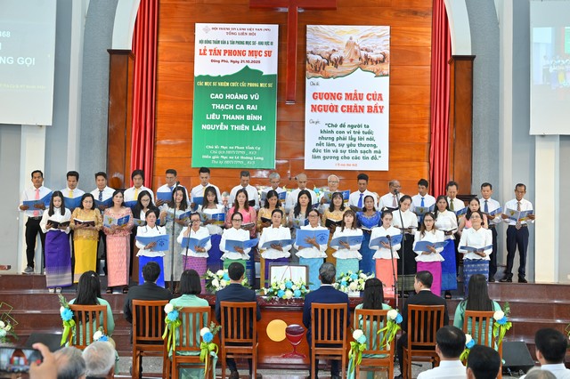 Lễ Tấn phong khép lại trong sự vui mừng và phước hạnh của Chúa, sau phần chúc phước của Mục sư Nguyễn Thế Hiển, Ủy viên Ban Trị sự Tổng Liên Hội.