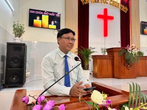 Mục sư Nguyễn Hữu Dũng rao giảng Lời Chúa