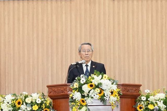 Mục sư Trần Văn Võ, Quản nhiệm Chi Hội Kiên Lương, chào mừng và giới thiệu quan khách