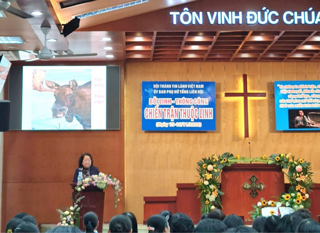Bà-Mục-Sư-Phạm-Xuân-Thiều-giảng-Bồi-linh-cho-ban-phụ-nữ