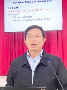 Với giáo trình “Phẩm chất và Phương pháp”, Mục sư Vũ Việt Anh, Trưởng khối Thiếu nhi – Ủy ban Thanh Thiếu nhi TLH đã dành thời gian còn lại huấn luyện nhằm giúp cho các giáo viên nhận biết: Trước hết, người dạy Kinh Thánh phải có phẩm chất Cơ Đốc; và sau đó người giáo viên phải biết phương pháp cũng như kỹ năng giảng dạy. Đây là điều hết sức cần thiết và quan trọng đối với tương lai của thế hệ trẻ trong Hội Thánh.