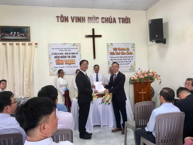 Mục sư Ủy viên BTS.TLH trao giấy chứng nhân thành lập Điểm nhóm
