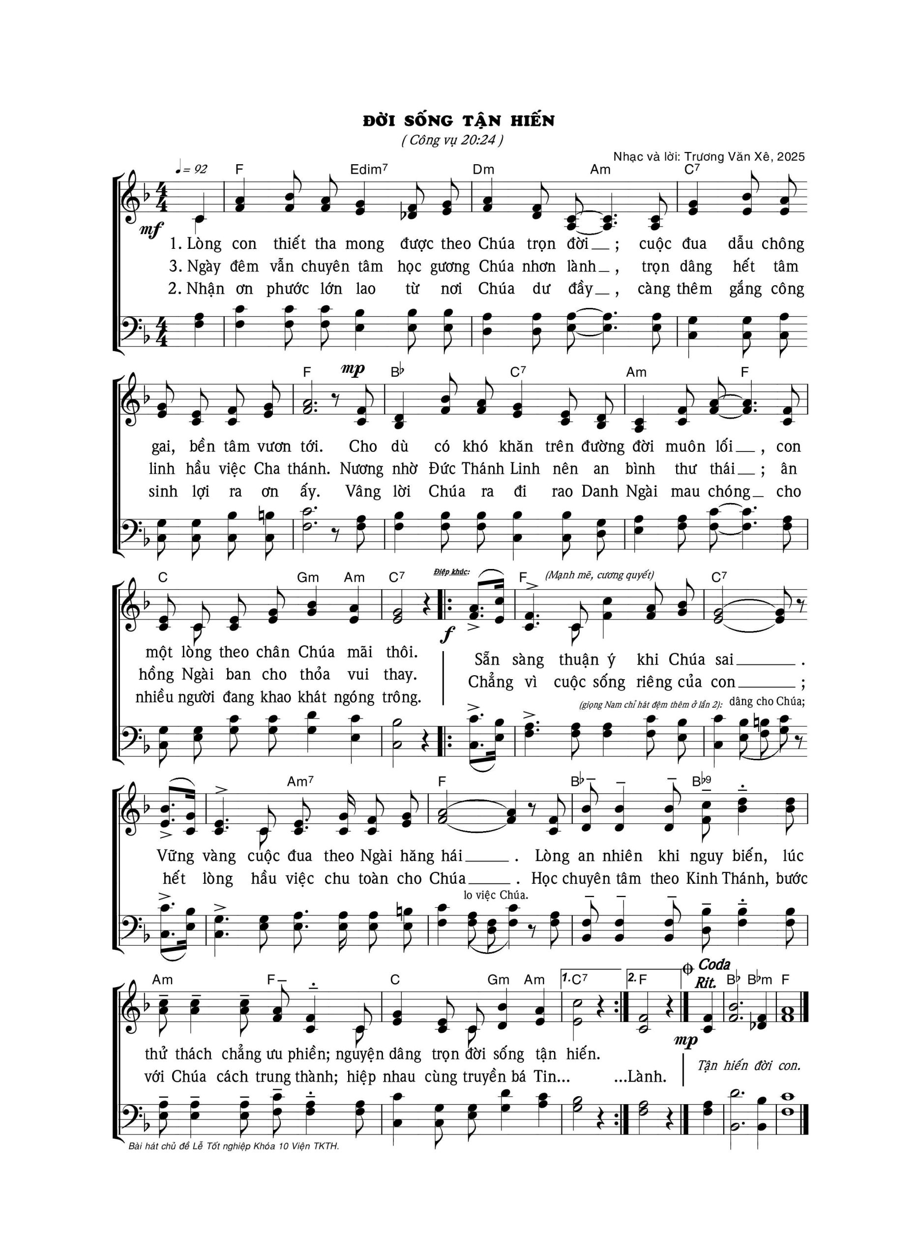Bài hát:  ĐỜI  SỐNG  TẬN  HIẾN