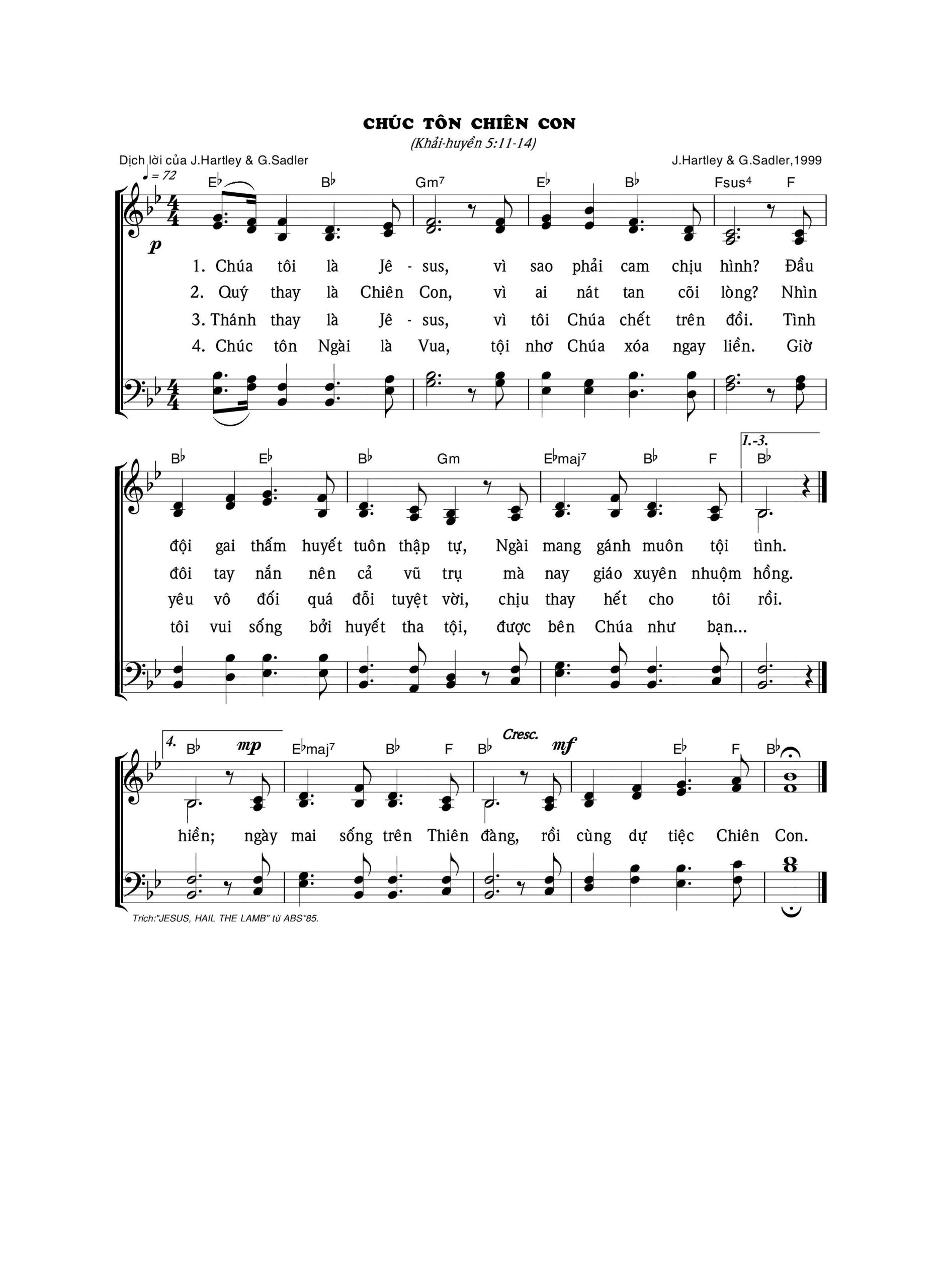 AudioNhạc Thánh Bài hát Thương khó: CHÚC TÔN CHIÊN CON 10/03/2026 354 Bài hát Thương khó: CHÚC TÔN CHIÊN CON Beat nhạc: Thảo Nguyên, BNTL Tôn vinh Chúa: Hamo Thủy https://httlvn.org/wp-content/uploads/2026/03/ChucTonChienCon-tvC_HamoThuy.mp3 Tải về File .PDF BEAT NHẠC