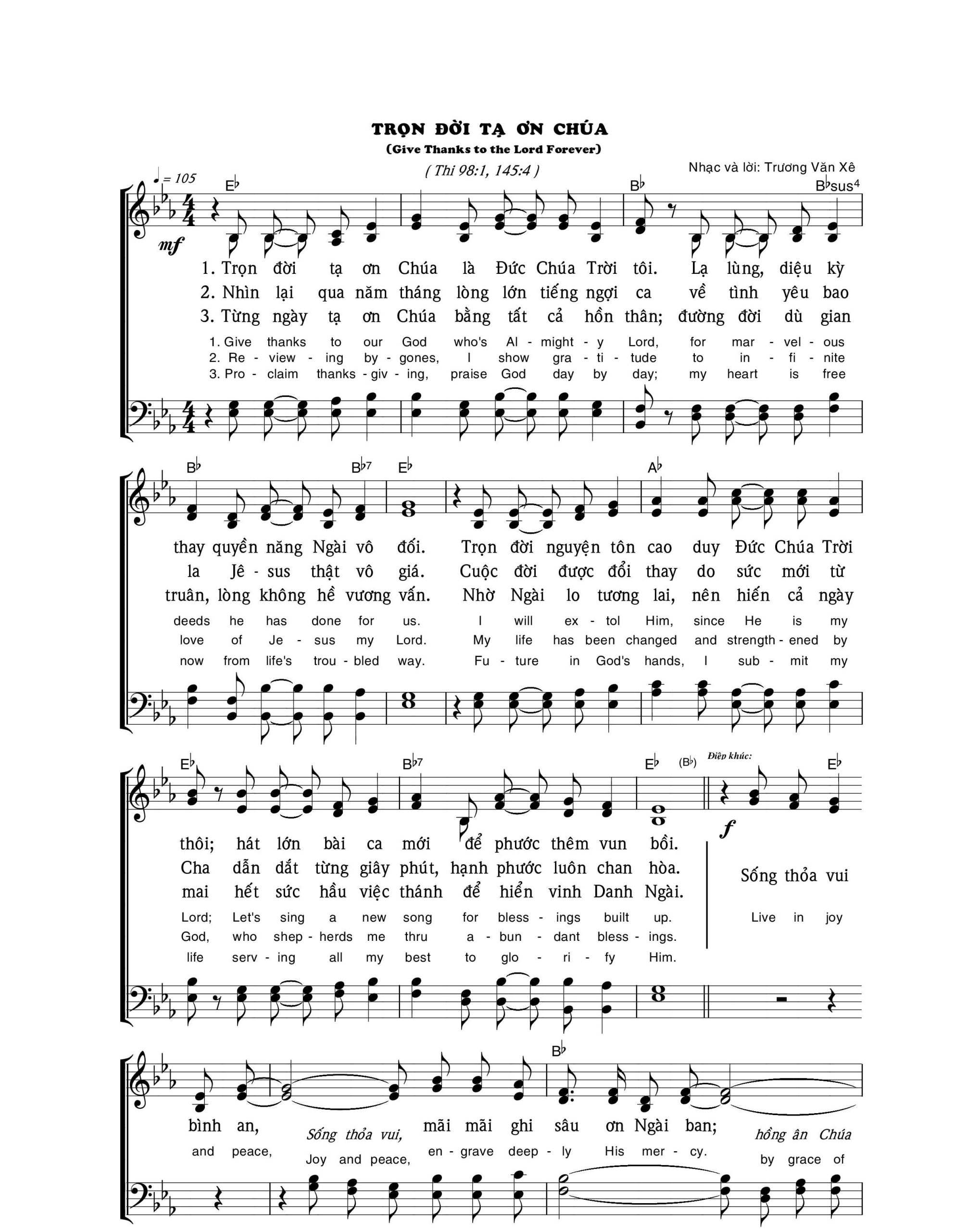NhạcSáng Tác Mới Bài hát: TRỌN ĐỜI TẠ ƠN CHÚA 04/09/2025 2318 Bài hát: TRỌN ĐỜI TẠ ƠN CHÚA Phối âm & mix: Thân Cường Tôn vinh Chúa: Quế Anh https://httlvn.org/wp-content/uploads/2025/09/TronDoiTaOnChua-tvC_QueAnh-keyDb.mp3 Tải về File .PDF BEAT NHẠC