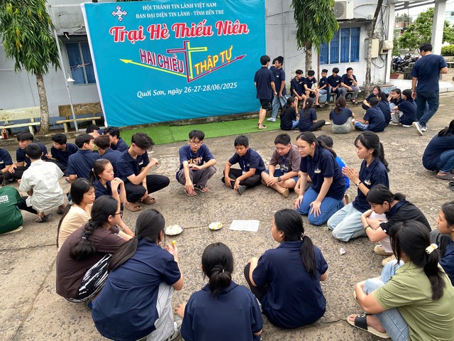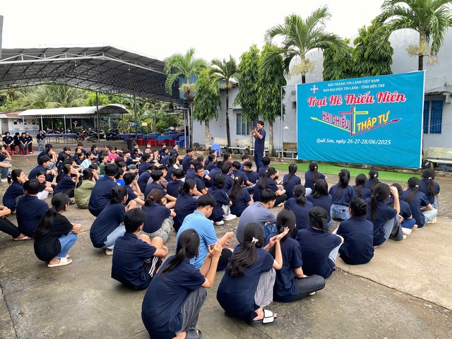 HTTLVN.ORG – Từ ngày 26-28/6/2025, Ban Đại diện Tin Lành tỉnh Bến Tre kết hợp cùng Khối Thiếu niên – Uỷ Ban Thanh Thiếu Nhi Tổng Liên Hội tổ chức kỳ trại hè dành cho lứa tuổi thiếu niên trong tỉnh tại nhà thờ Tin Lành Quới Sơn với chủ đề HAI CHIỀU THẬP TỰ.
