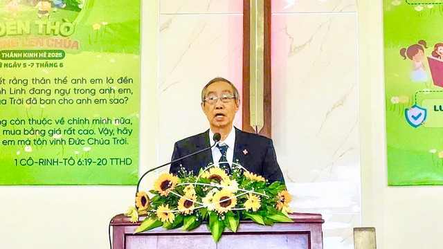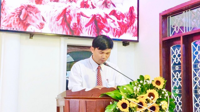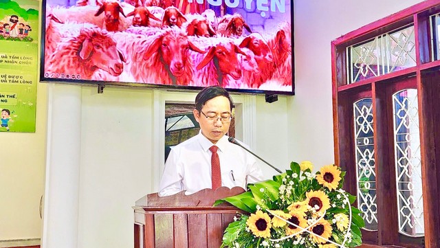 Mục sư Nguyễn Thế Vinh, TB Ban Đại diện tỉnh Quảng Ngãi, làm chứng về công việc Chúa tại Quảng Ngãi