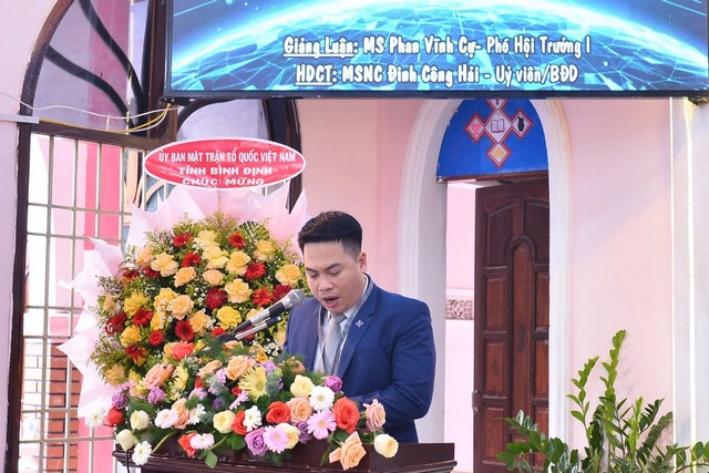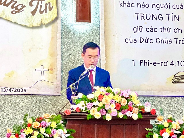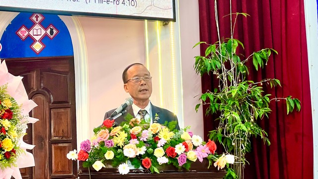 Hiện diện có: Mục sư Phan Vĩnh Cự, Phó Hội trưởng I TLH, diễn giả Hội đồng; Mục sư Dương Quang Hòa, Ủy viên TLH – Mục vụ tỉnh; Mục sư Nguyễn Ngọc Bình, Trưởng ban, cùng quý Mục sư trong Ban Đại diện với khoảng 600 tôi con Chúa từ các Hội Thánh trong tỉnh.