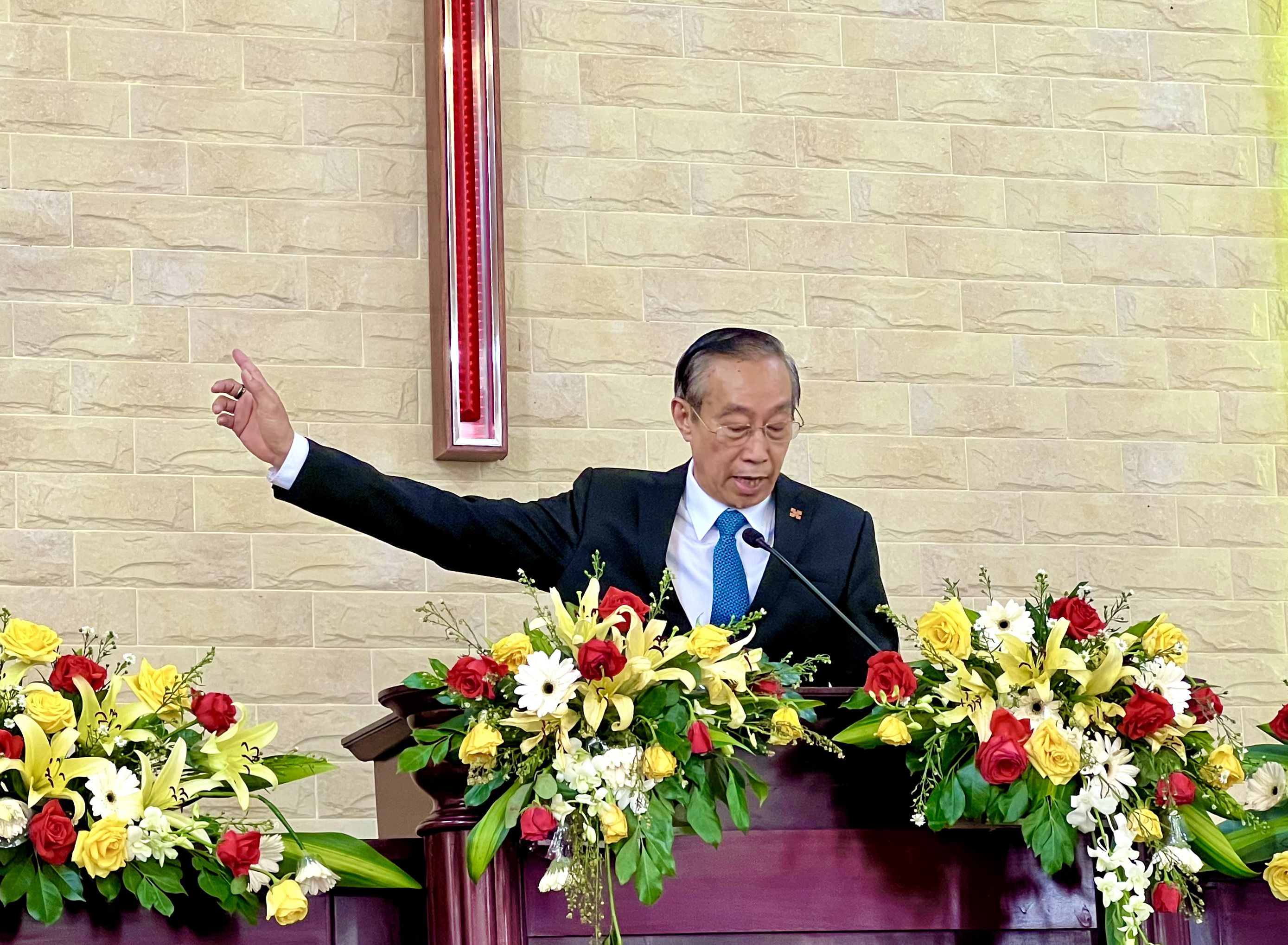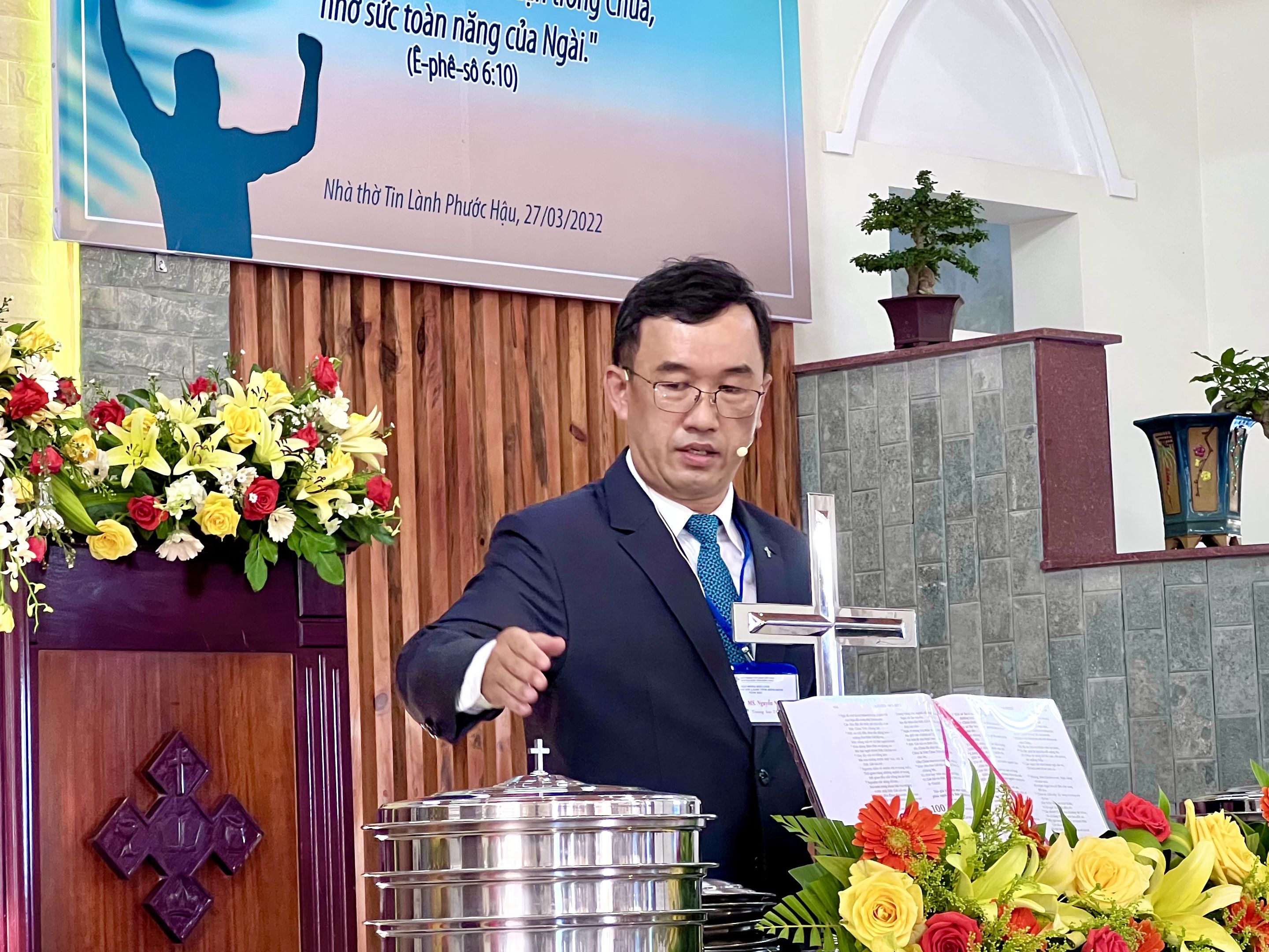 Mục sư Nguyễn Ngọc Bình (Trưởng ban ĐDTL), Chủ tọa Hội đồng, cử hành Thánh lễ Tiệc thánh cho Hội đồng