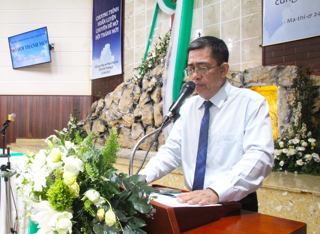 MS Huỳnh Thành Tín, UV BĐD, chào mừng Mục sư diễn giả và quí tôi con Chúa từ các Hội Thánh trong tỉnh về tham dự