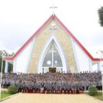 Hinh luu niem trai he ben ngoai nha tho Phuoc Long