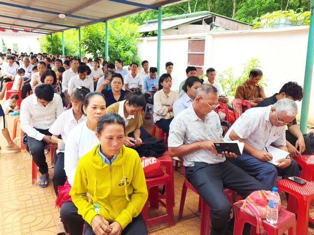 Hiện diện có: Mục sư Phan Vĩnh Cự, Phó Hội trưởng I Hội Thánh Tin Lành Việt Nam; Mục sư Điểu Huynh, Uỷ viên Tổng Liên Hội – Mục vụ Tin Lành tỉnh Bình Phước; Mục sư Điểu Hiêng, Trưởng ban và các thành viên Ban Đại diện Tin Lành tỉnh; cùng toàn thể quý tôi con Chúa từ các Hội Thánh trong tỉnh.