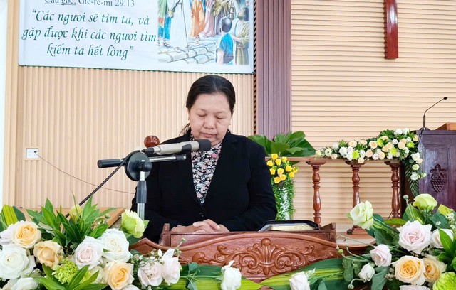 Nữ Truyền đạo Trần Thị Xuân Mai cầu thay cho nhu cầu của Ban Phụ nữ tỉnh