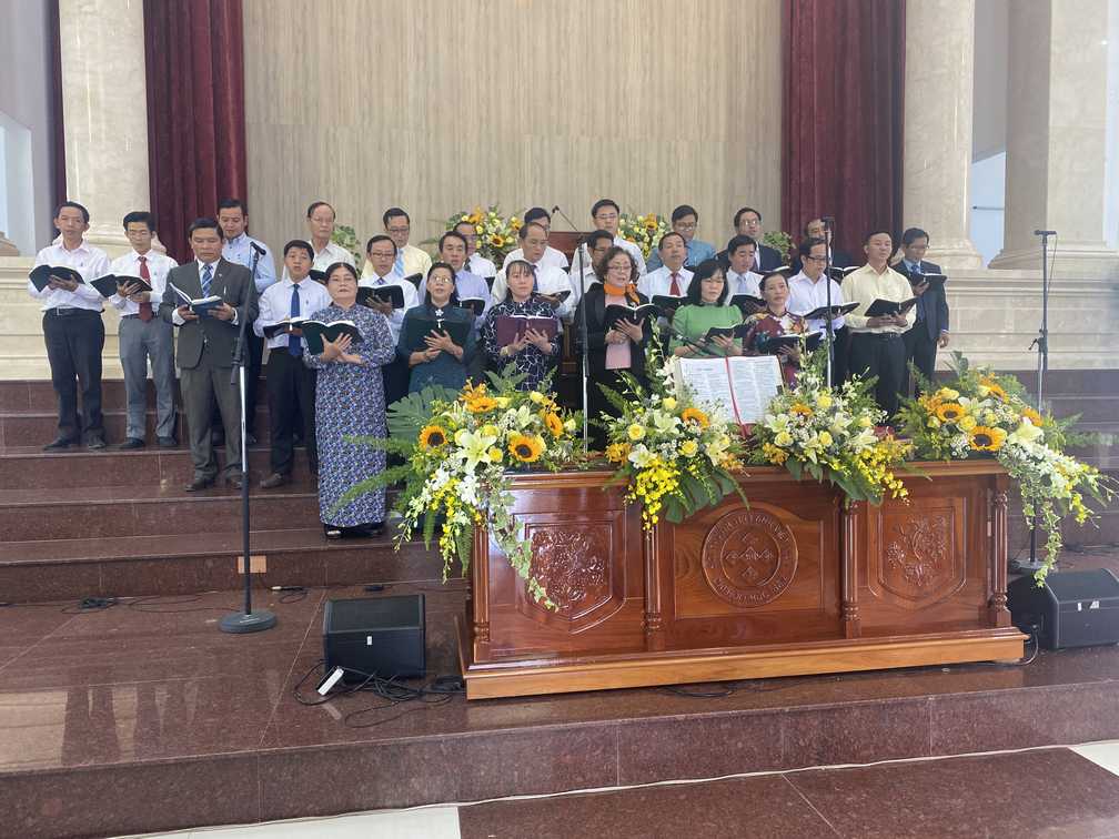 Mục sư Võ Đông Thu, Ủy viên TLH, Mục vụ Bình Thuận, Chủ lễ Hội đồng. Có 75 đại biểu chính thức là Giáo phẩm và Chấp sự tham dự, cùng các Quý bà Mục sư là đại biểu dự thính.