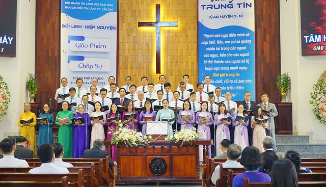 HTTLVN.ORG – Sáng ngày 05/8/2025 tại nhà thờ Tin Lành Cần Thơ đã diễn ra buổi hiệp nguyện lần đầu tiên cho cả TP. Cần Thơ (mới), bao gồm các tỉnh thành Sóc Trăng, Hậu Giang và Cần Thơ trước đây. Hiện diện trong buổi hiệp nguyện có: Mục sư Hồ Nguyên Kha, Ủy viên Tổng Liên Hội (TLH) – Mục vụ TP. Cần Thơ; Mục sư Lê Hoàng Long, Ủy viên TLH; Mục sư Nguyễn Ngọc Nhỏ, Trưởng ban và các thành viên Ban Đại Diện Tin Lành TP. Cần Thơ mới (BĐD); cùng khoảng 150 Giáo phẩm và Chấp sự trong TP. Cần Thơ.