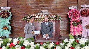 MS Phan Văn Cử và MS Huỳnh Cường thực hiện nghi thức Cảm tạ dâng nhà cho Chúa và cầu nguyện cho Hội Thánh