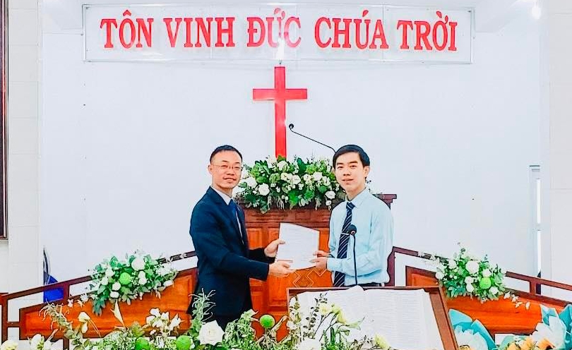 MS Hồ Nguyên Kha cũng trao Giáo vụ lệnh của Tổng Liên Hội tiếp tục bổ nhiệm TĐ Sử Đức Nguyên phụ tá Quản nhiệm Chi hội Cà Mau, đặc trách Điểm Nhóm Khánh Bình Đông thêm nhiệm kỳ 02 năm (2022-2024)