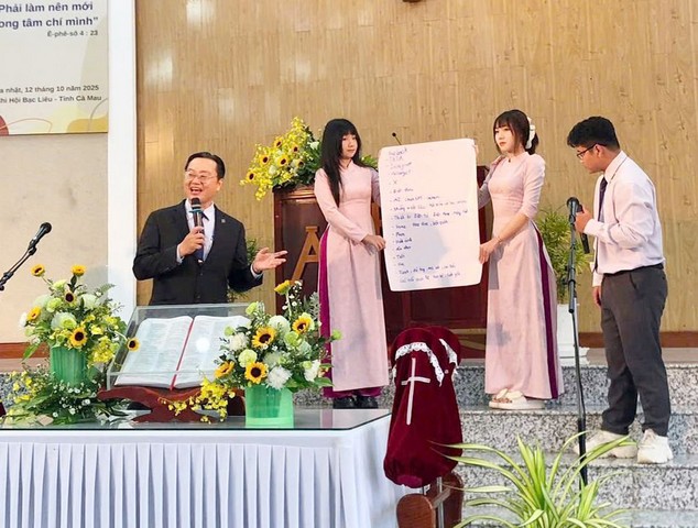 HTTLVN.ORG – Hòa chung tinh thần ngày Thanh Thiếu niên Tin Lành (12/10/2025), các Hội Thánh Tin Lành tại tỉnh Cà Mau đã tổ chức chương trình Bồi linh – Thông công dành cho Thanh Thiếu niên với chủ đề “ĐỔI MỚI”, dựa trên nền tảng Kinh Thánh Ê-phê-sô 4:23: “Phải làm nên mới trong tâm chí mình”.