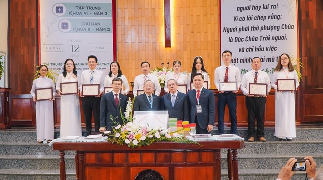 HTTLVN.ORG – Sáng ngày 12/7/2025 tại nhà thờ Tin Lành Cần Thơ đã diễn ra buổi bế giảng dành cho hai lớp Thánh Kinh Căn Bản (TKCB): Lớp Dài hạn Khóa II năm 2 và Lớp Tập trung Khóa VI năm 2. Trong đó, Lớp Dài hạn từ ngày 10/8/2024 đến ngày 10/5/2025 học vào thứ Bảy tuần thứ hai hàng tháng tại các Chi Hội theo phiên thứ: Bình Thủy, Cái Răng, Ô Môn, Cần Thơ và Phong Điền; còn lớp Tập trung học từ ngày 30/6 – 10/7/2025 tại nhà thờ Tin Lành Cần Thơ. Nhân dịp này, Ban Tổ chức cũng phát Chứng chỉ Tốt nghiệp cho các khóa sinh lớp Dài hạn và Tập trung đã hoàn tất 4 năm học.