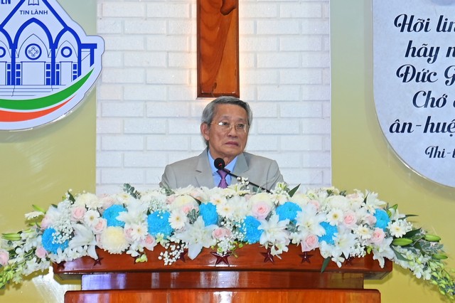 “Khắc Ghi Ơn Chúa” là chủ đề của Lễ Cảm tạ trên nền tảng Kinh Thánh Thi Thiên 103:2, “Hỡi linh hồn ta, hãy ngợi khen Đức Giê-hô-va, Chớ quên các ân huệ của Ngài.” Mục sư Hội trưởng nhấn mạnh trong sứ điệp rằng để khắc ghi ơn Chúa, tôi con Chúa trước hết cần nhận biết ơn Chúa và sự khắc ghi ơn Chúa phải được thể hiện cụ thể qua việc báo đáp ơn Chúa.