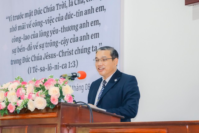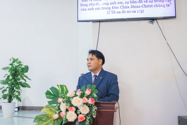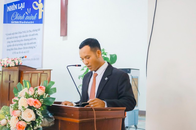 Mục sư Ai Buân, Thư ký Ban Đại diện kiêm Đặc trách Thanh Thiếu nhi tỉnh Đắk Lắk, đã giảng Lời Chúa với chủ đề “Nhìn lại chính mình” trên nền tảng Kinh Thánh I Tê-sa-lô-ni-ca 1:2-4. Các bạn được nhìn lại chính mình qua: công việc của đức tin, công lao của lòng yêu thương và sự bền đỗ trong sự trông cậy.