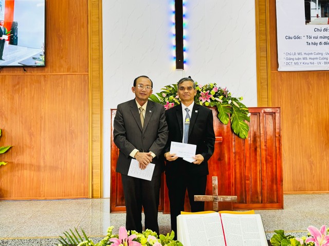Mục sư Huỳnh Cường cầu nguyện cho Mục sư Quản nhiệm, Ban Chấp sự và cơ sở nhà Chúa
