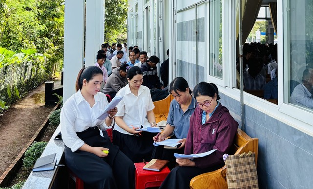 Vì số lượng quá đông, nên nhiều con cái Chúa phải ngồi bên ngoài sân nhà thờ để học hỏi Lời Chúa