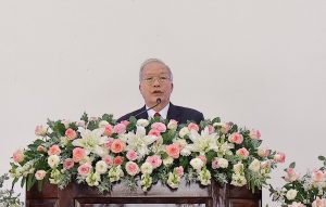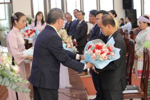 MS Nguyễn Xuân Sanh, UV TLH, thay mặt Ban Trị sự Tổng Liên Hội, tặng hoa chúc mừng