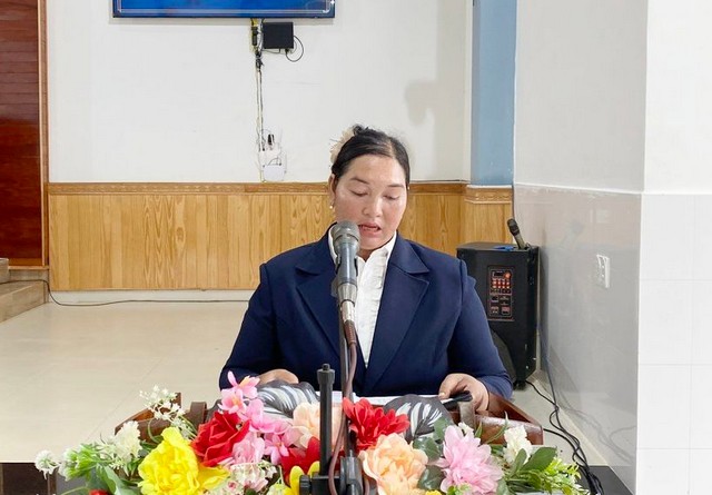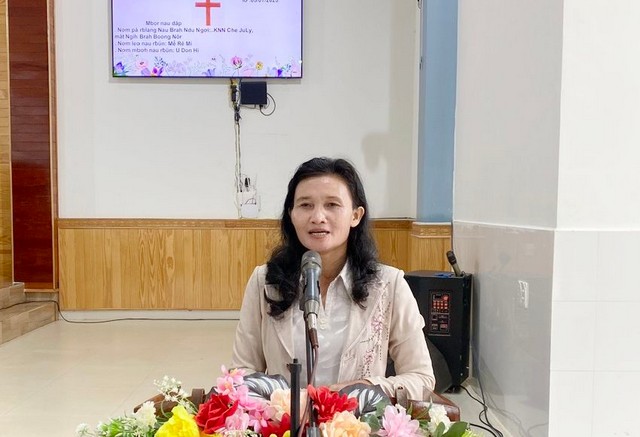 Bà Mục sư Y Ndang Bu gle, Trưởng ban Phụ nữ tỉnh Đắk Nông (cũ), có lời giới thiệu và chào mừng
