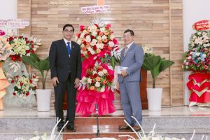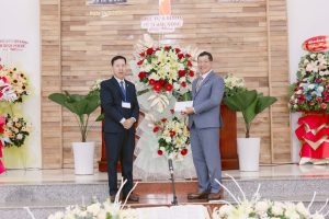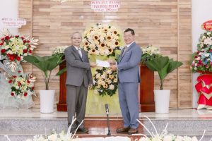 MS Phan Vĩnh Cự, thay mặt Hội đồng Quản trị Sản nghiệp HTTLVN, tiếp nhận tờ Cung hiến