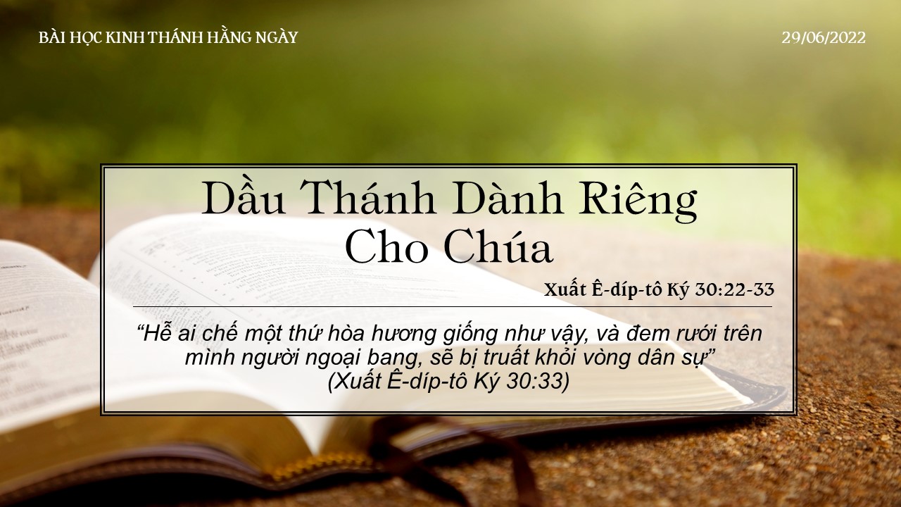 Dầu Thánh Dành Riêng Cho Chúa – 29/6/2022