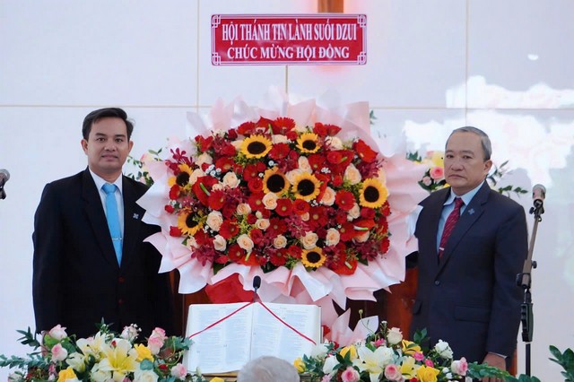 Hội Thánh Suối Dzui tặng hoa chúc mừng Hội đồng