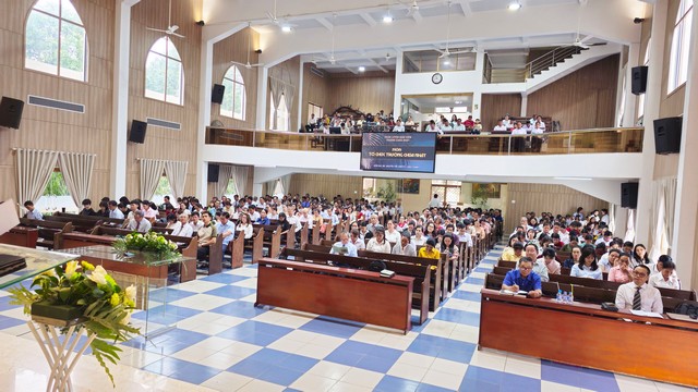 HTTLVN.ORG – Khoá Huấn luyện Giáo viên Trường Chúa nhật với chuyên đề “Tổ chức Trường Chúa nhật” được Ban Đại diện Tin Lành Đồng Nai kết hợp với UB CĐGD Tổng Liên Hội tổ chức, với khoảng 380 giáo viên từ các Hội Thánh trong tỉnh Đồng Nai (cũ) tham dự, diễn ra vào ngày 15/08/2025 tại nhà thờ Tin Lành Biên Hòa, 198A Phan Đình Phùng, phường Trấn Biên, tỉnh Đồng Nai.