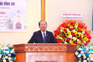 Nhân ngày Lễ Cung hiến nhà thờ Tin Lành Vĩnh An, đại diện Tổng Liên Hội, Ban Đại diện Tin Lành tỉnh Đồng Nai và chính quyền các cấp tỉnh Đồng Nai chúc mừng Hội Thánh.