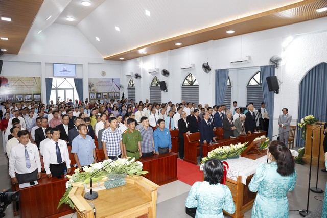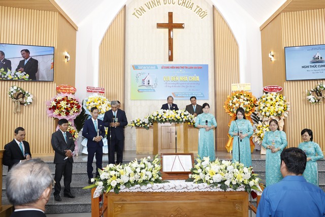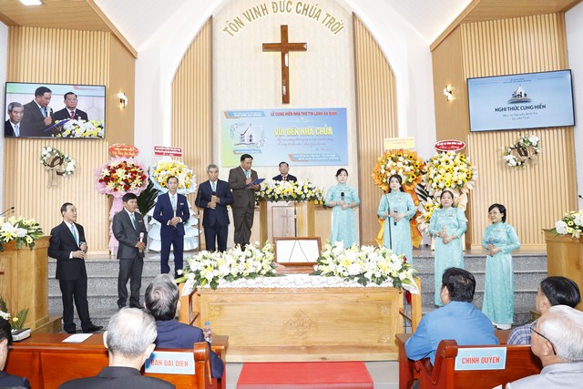 Tiếp theo chương trình, Mục sư Nguyễn Bình Tín đã cử hành nghi thức cung hiến cách trọng thể. Mục sư Phan Vĩnh Cự đã cùng toàn thể Hội Thánh dâng ngôi đền thờ làm nơi biệt riêng ra thánh cho sự thờ phượng, giảng dạy và rao truyền danh Chúa.