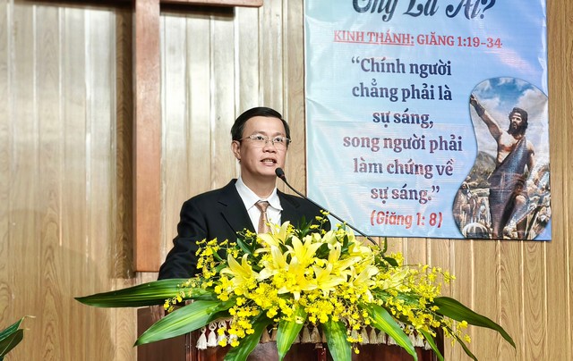 Trong chương trình thờ phượng buổi sáng Mục sư Đỗ Ngọc Hòa (Giám học Viện Thánh Kinh Thần Học) đã trình bày sứ điệp “Giăng Báp-tít, ông là ai?” dựa trên Giăng 1:19-34. Tôi tớ Chúa dùng Lời Chúa để nhắc nhở quý giáo viên: Điều kiện tiên quyết để hầu việc Chúa hiệu quả và vững vàng không phải là câu hỏi “Tôi sẽ làm gì?”, mà là câu hỏi “Tôi là ai?” và “Căn tính của người hầu việc Chúa là gì?”