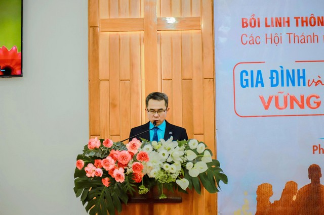 Trong dịp này, tôi con Chúa vinh dự đón tiếp QPMS Phạm Xuân Thiều, về thăm và chia sẻ Lời Chúa. Với chủ đề: “HỘI THÁNH VỮNG MẠNH NHỜ GIA ĐÌNH VỮNG MẠNH” dựa trên Kinh Thánh Thi Thiên 128:1-6, QPMS Phạm Xuân Thiều đã khích lệ và nhắc nhở cho các anh chị em trong các Ban Trung Tráng niên về thứ tự của gia đình theo Kinh Thánh: Đấng Christ là số một trên hết, Đấng cai trị gia đình. Tiếp đến là vai trò của người chồng – người chồng là người lãnh đạo, làm gương tốt cho vợ và các con trong đời sống đức tin, tin kính Chúa, cũng là người bảo vệ, dẫn dắt, nuôi dưỡng gia đình. Người vợ là người ở bên cạnh chồng an ủi, dạy dỗ con cái cái, chăm sóc gia đình. Còn con cái phải yêu quý cha mẹ và vâng lời cha mẹ. Gia đình vững mạnh là gia đình tin kính, yêu mến Chúa, có sự hiệp một, yêu thương và luôn giữ thì giờ nhóm gia đình lễ bái để giúp cho gia đình giữ mối liên hệ tương giao với Chúa mỗi ngày. Khi gia đình vững mạnh thì nhờ đó Hội Thánh cũng được vững mạnh.