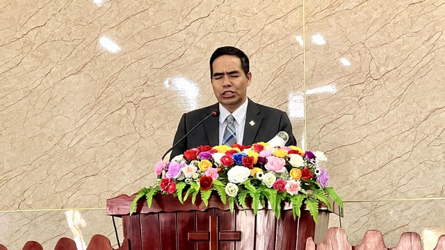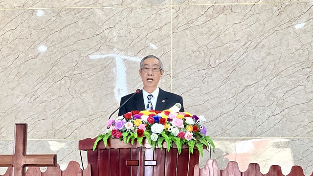 Mục sư Nguyễn Đình Phước làm chứng công việc Chúa của các Hội Thánh hiệp nguyện bằng tiếng phổ thông:
