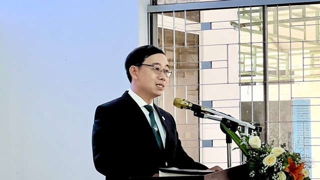 Mục sư Ngô Nhơn Thành, Quản nhiệm Chi Hội Nhơn Thành, có lời chào mừng và hướng dẫn chương trình hiệp nguyện