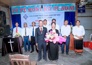 MS Hanh cử hành nghi thức bổ nhiệm cho Mục sư Nay Chới, đọc và trao Giáo vụ lệnh cùng ấn tín, cầu nguyện bổ nhiệm cho tân Quản nhiệm
