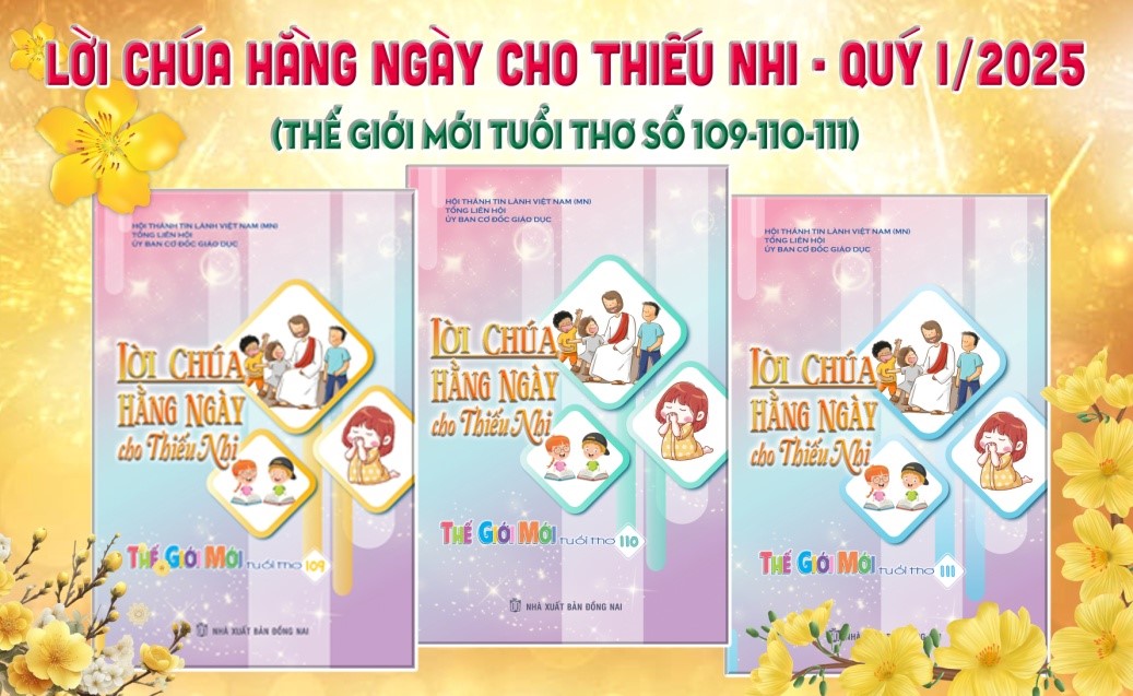 Kính mong quý Mục sư, Truyền đạo, Đặc trách Hội Nhánh và Điểm Nhóm, Giáo viên hướng dẫn và Phụ huynh dành tặng bộ Lời Chúa Hằng Ngày Cho Thiếu Nhi – Thế Giới Mới Tuổi Thơ quý I/2025 (các số 109, 110, 111) – để khích lệ các em trung tín với Lời Chúa nhằm giúp các em luôn ở trong mối liên hệ mật thiết với Ngài, được lớn lên trong sự hiểu biết Đức Chúa Trời.