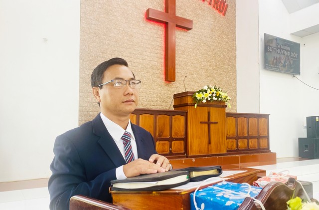 Mục sư Nguyễn Tấn Thọ, Quản nhiệm Hội Thánh Mong Thọ, hướng dẫn chương trình