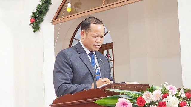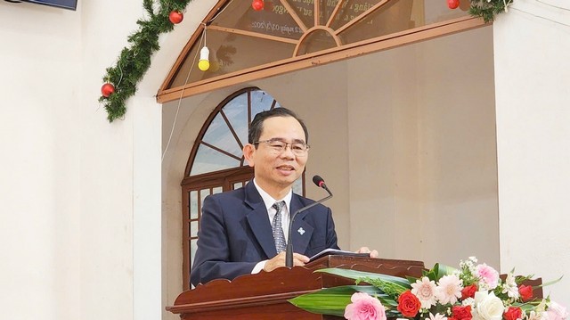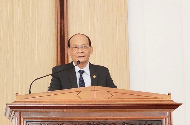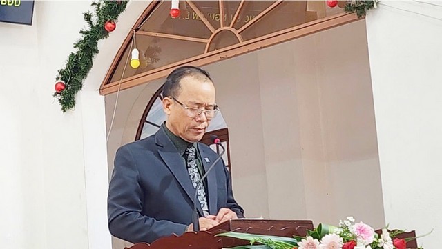Mục sư Nguyễn Thế Vinh, Trưởng Ban Đại diện tỉnh Quảng Ngãi, làm chứng công việc Chúa trong tỉnh và những vấn đề chung cầu nguyện: