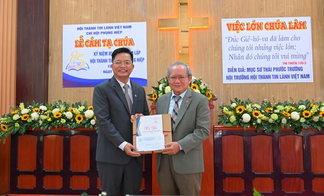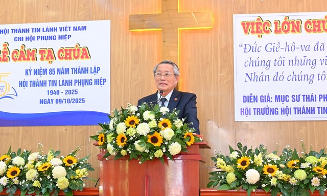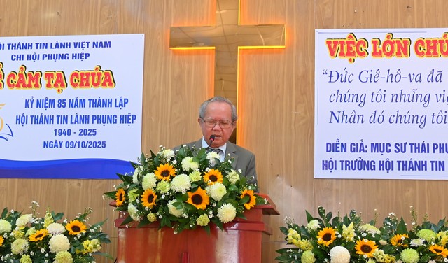 HTTLVN.ORG – Vào lúc 9g ngày 09/10/2025, đã diễn ra Lễ Cảm tạ Chúa – Kỷ niệm 85 năm Thành lập Hội Thánh Phụng Hiệp với sự hiện diện của: Mục sư Thái Phước Trường – Hội trưởng Hội Thánh Tin Lành Việt Nam; Mục sư Châu Tử Tôn, Mục sư Nguyễn Thế Hiển: Ủy viên Tổng Liên Hội; Ban Đại diện Tin Lành Thành phố Cần Thơ, cùng Ban Đại diện Tin Lành các tỉnh: Cà Mau, Đồng Tháp, Vĩnh Long, An Giang; quý giáo phẩm trong Thành phố Cần Thơ; đại diện các Hội Thánh trong khu vực, cùng toàn thể con dân Chúa tại Phụng Hiệp. Số lượng khoảng 350 người.
