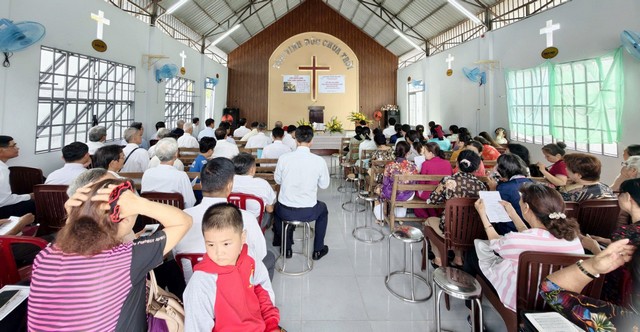 HTTLVN.ORG – Điểm Nhóm An Bình, do Hội Thánh Tin Lành Vĩnh Long mở, đã phải tạm ngưng sinh hoạt tại nhà nguyện kể từ ngày 19/5/2019, do mâu thuẫn từ việc tranh chấp quyền sử dụng đất, nay trong sự ban ơn và dẫn dắt của Chúa, sinh hoạt thờ phượng Chúa của các tín hữu Điểm Nhóm An Bình được khôi phục trở lại tại nhà nguyện sau 07 năm. Với lòng biết ơn Chúa, Hội Thánh Tin Lành Vĩnh Long đã tổ chức Lễ cảm tạ Chúa vào lúc 15 giờ ngày 26/10/2025. Hiện diện có: Mục sư Châu Tử Tôn, UV TLH – Mục vụ tỉnh Vĩnh Long, diễn giả cho chương trình; Mục sư Lê Hoàng Phúc, UV TLH; Mục sư Trương Thanh Thiên Ân, Trưởng Ban Đại diện tỉnh Vĩnh Long; cùng khoảng 130 tôi con Chúa từ các Hội Thánh trong khu vực tham dự.