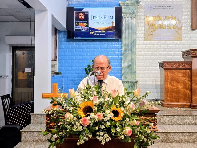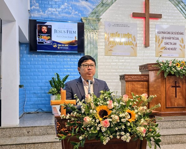 HTTLVN.ORG – Nhằm đẩy mạnh công tác truyền giáo trong tỉnh, nỗ lực vươn tới cộng đồng để giúp biết Chúa Jêsus. Ban Đại diện Tin Lành tỉnh Tây Ninh kết hợp với “Mục vụ Jesus Film Việt Nam” tổ chức Huấn luyện Truyền giáo cho các nhân sự truyền giáo của các Hội Thánh trong tỉnh. Chương trình đã diễn ra từ 8g30 đến 16g30, thứ Sáu ngày 24/4/2026 tại Nhà thờ Tin Lành Phước Lợi, số 195 khu 2, ấp Chợ, xã Mỹ Yên, tỉnh Tây Ninh.