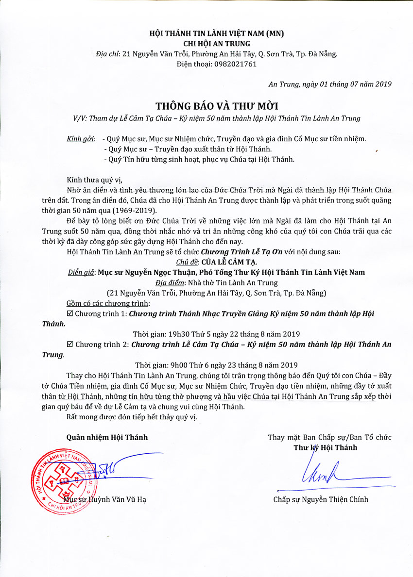 Thông Báo & Thư Mời V/v Lễ Cảm Tạ Chúa –…