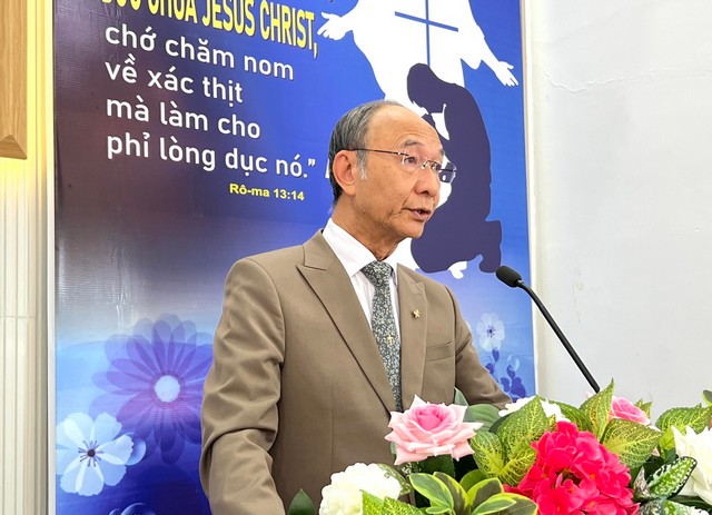 Mục sư Lê Minh Tân chào mừng và cầu nguyện mở đầu