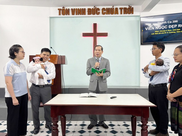 Trong chương trình Hiệp nguyện lần này có thì giờ dâng con trẻ cho gia đình các tôi tớ Chúa: MSNC Pi Năng Lê Di và TĐ Trần Công Khuyên